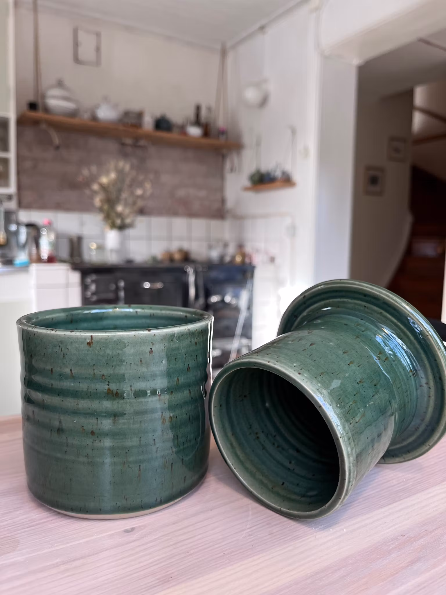 En smörklocka har du på köksbänken med smör som alltid är mjukt och bredbart. Fyll det lilla röret med smör, häll lite vatten i det stora röret och sätt ihop. Vattnet gör att det blir ett vattenlås så att smöret håller. Vattnet måst bytas varannan/ var tredje dag.