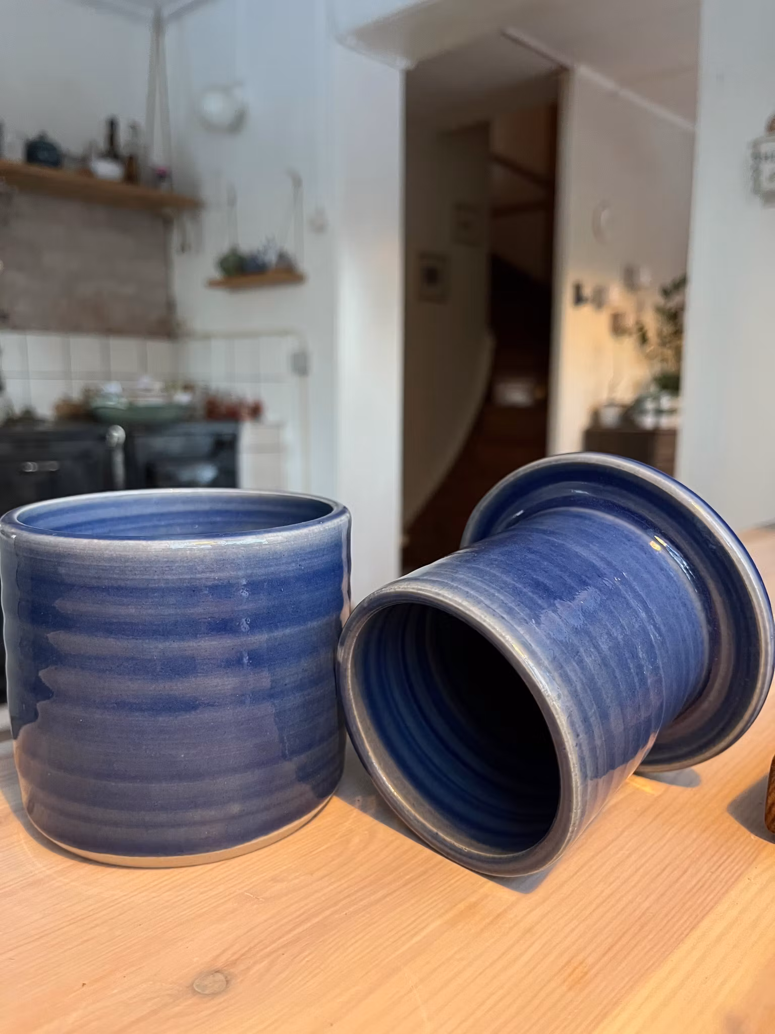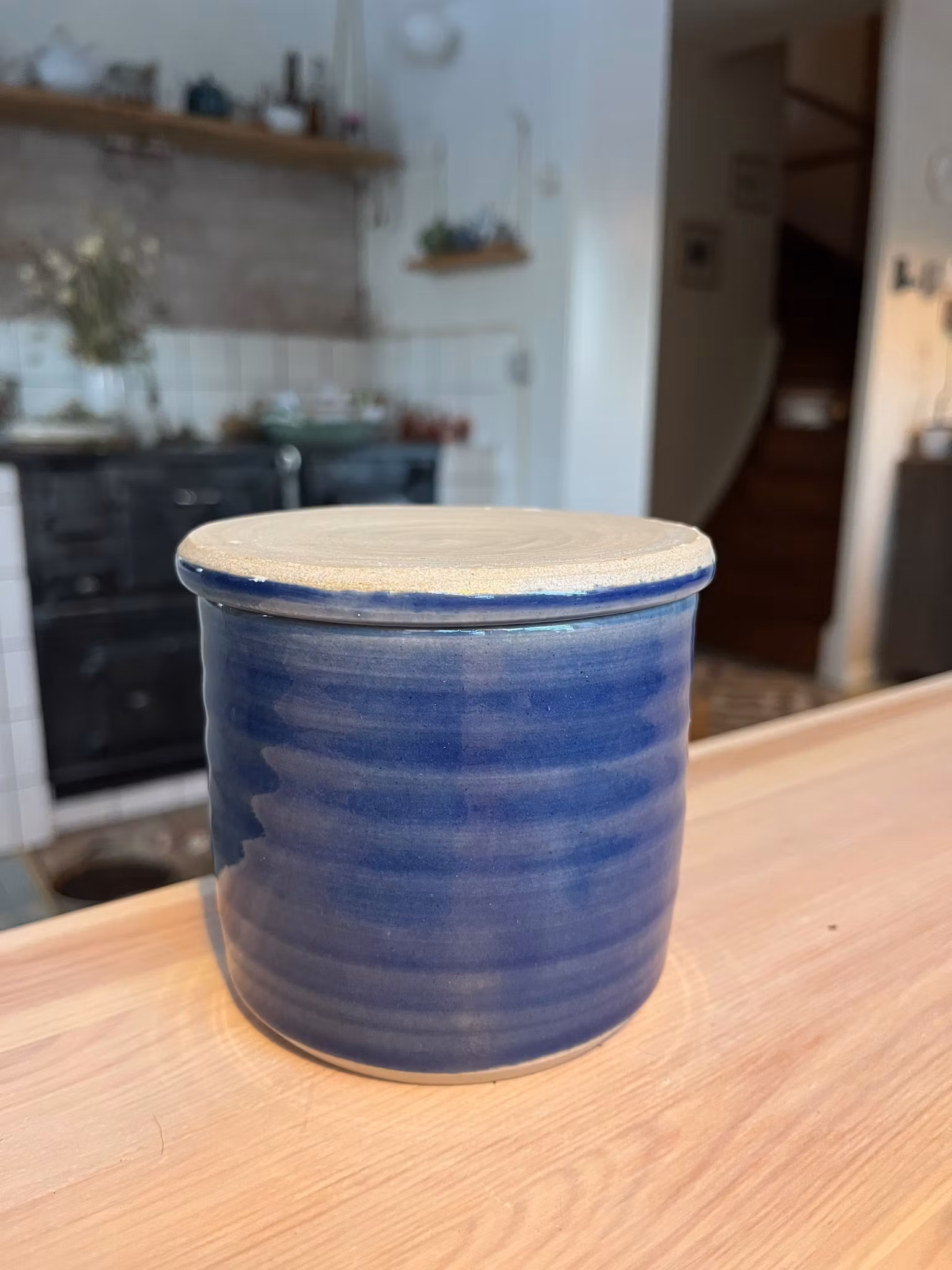 En smörklocka har du på köksbänken med smör som alltid är mjukt och bredbart. Fyll det lilla röret med smör, häll lite vatten i det stora röret och sätt ihop. Vattnet gör att det blir ett vattenlås så att smöret håller. Vattnet måst bytas varannan/ var tredje dag.